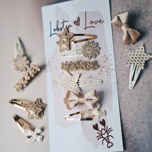 Prachtig setje van maar liefst 6 haarspeldjes in goud/ecru tinten van 5 cm