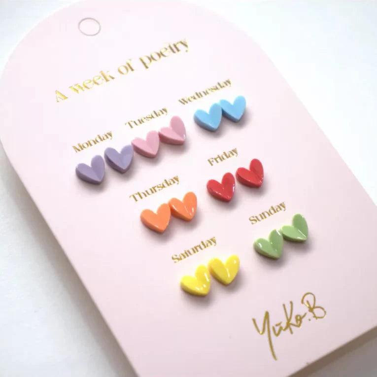 Ontdek deze nieuwe collectie hartjes oorbellen. Deze kaart bevat 7 paar oorbellen voor gaatjes, perfect om het hele jaar door af te wisselen.